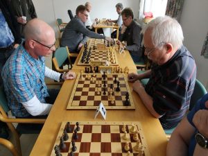 Gegen 13.30 Uhr begann ein Blitz-Rundenturnier „Jeder gegen Jeden“. Thorsten Lesniak führte souverän und launig durchs Turnier. Es gab spannende und teils hochklassige Partien, für die in erster Linie der FM Janusz Koscielski oder auch Dirk Rogalla verantwortlich zeichneten. Letztgenannter musste leider aus privaten oder beruflichen Gründen das Turnier frühzeitig verlassen. Er hätte gute Chancen auf den Gesamtsieg gehabt, war er doch derjenige, der Janusz die einzige Niederlage zufügte.