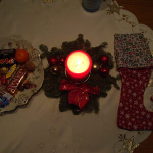 Heute erschien uns ein Weihnachtsengel in Gestalt von Achim Raasch, der uns mit einem liebevoll und namentlich gestalteten, prallgefüllten Stiefel von Livia Leichner überraschte.