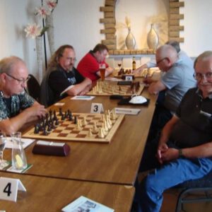 An Brett 4 spielte unser Spielleiter Achim Raasch einen kurzen schnellen Sizilianer. Da man sich bald auf ein Remis verständigte, konnte Achim den Verlauf der anderen Partien beobachten und für mich schriftlich festhalten, wofür ich ihm sehr dankbar bin.