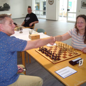 Das Vater-Tochter-Gespann an Brett 2 und 4 hatte leider kein Glück an diesem Tag, obwohl sie beide länger gekämpft haben. Vor der letzten Partie von Sönke Hoffmann an Brett 4 stand es 3,5:3,5 im Wettkampf. Leider musste er eine Niederlage hinnehmen.
