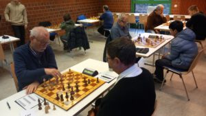Die Partien von Achim Raasch an Brett 4 und Atilla Baslamis an Brett 5 endeten leider mit Niederlagen. Achim beschrieb den Verlauf so: „Nach scharfem Angriff des Gegners im Mittelspiel mit Bauernverlust kippte das bis dahin ausgeglichene Spiel. Die Partie zog sich über 40 Züge, bis ich mich der Bauernübermacht geschlagen gab.“ Im Endspiel zog Ati, der nur noch wenig Zeit auf der Uhr hatte, den Kürzeren und gab nach 3 ½ Stunden auf.