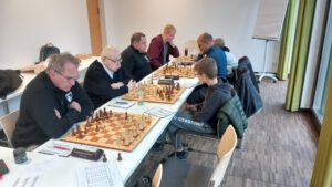 Am 30.11.2025 trat die 1. Mannschaft auswärts gegen Recklinghäuser SV 2 in der 1. Kreisliga an. Hier gab es auch eine Zweiteilung, aber anderer Art. Die Partien an Brett 1, 2 und 3 endeten jeweils mit einem Remis, während die Bretter 4-6 uns keine Punkte einbrachten.