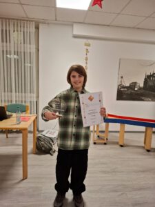 Ab wann spricht man von einer Tradition? Hier gehen die Meinungen weit auseinander. Unser Weihnachtsschnellschachturnier am 12.12.2025 fand jedenfalls zum dritten Mal statt. Mit neun Teilnehmenden war es gut besucht. Es wurden vier Runden gespielt; die Bedenkzeit pro Spieler betrug 15 Minuten. Die Preise hatte unser Spielleiter Achim Raasch besorgt.