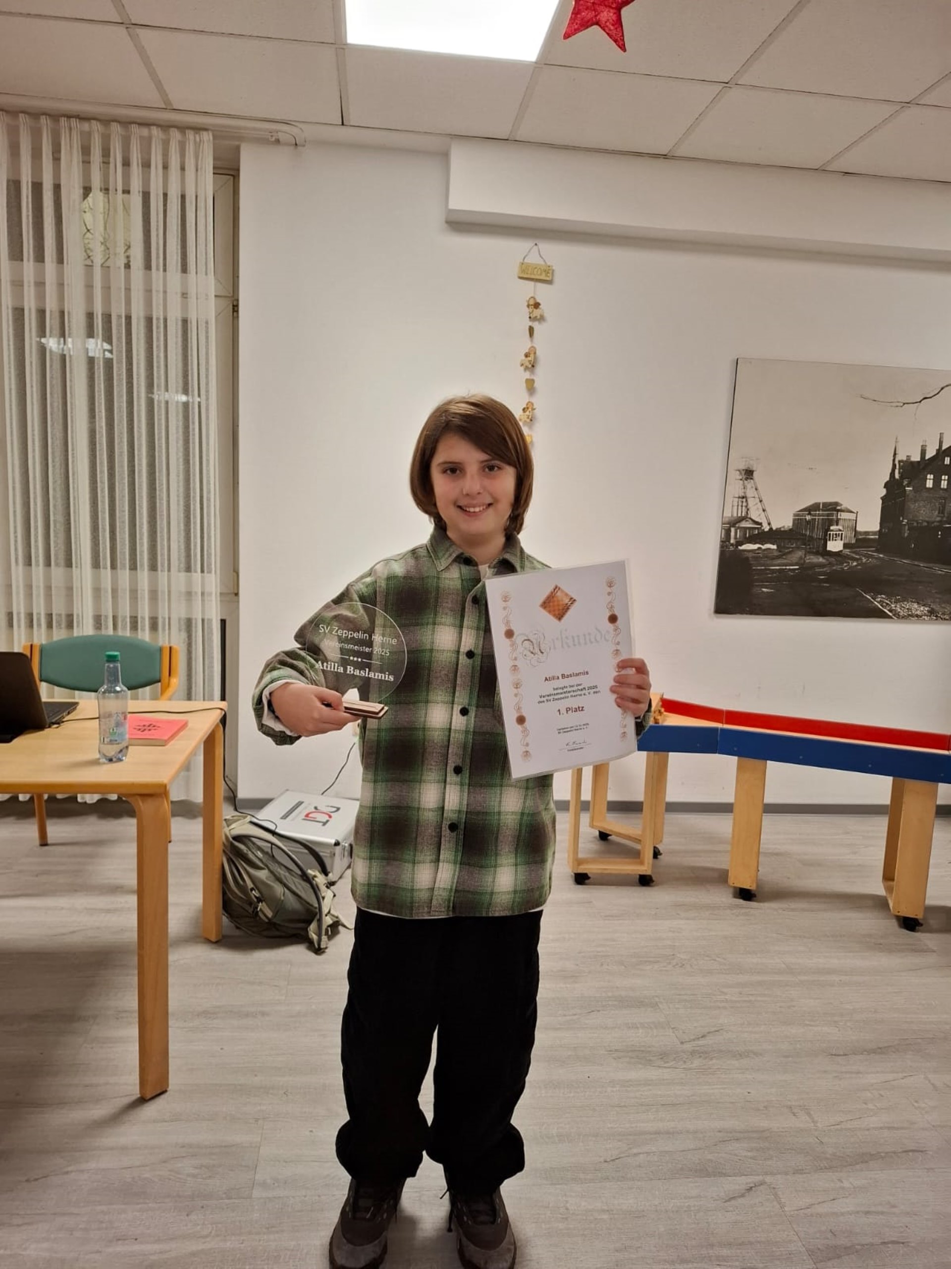 Nach zwei Stunden standen die Sieger fest. Bevor die Preise überreicht wurden, haben der Vereinsmeister 2025 und die Siegermannschaft im Dreierpokal 2025 ihre Auszeichnungen erhalten. Wie schon berichtet (VM und DP: Sieger stehen fest) ist Atilla Baslamis unser neuer Vereinsmeister, und die Siegermannschaft im Dreierpokal bestand aus Atilla Baslamis, Roman Sheberstov und Rolf Gehrke.