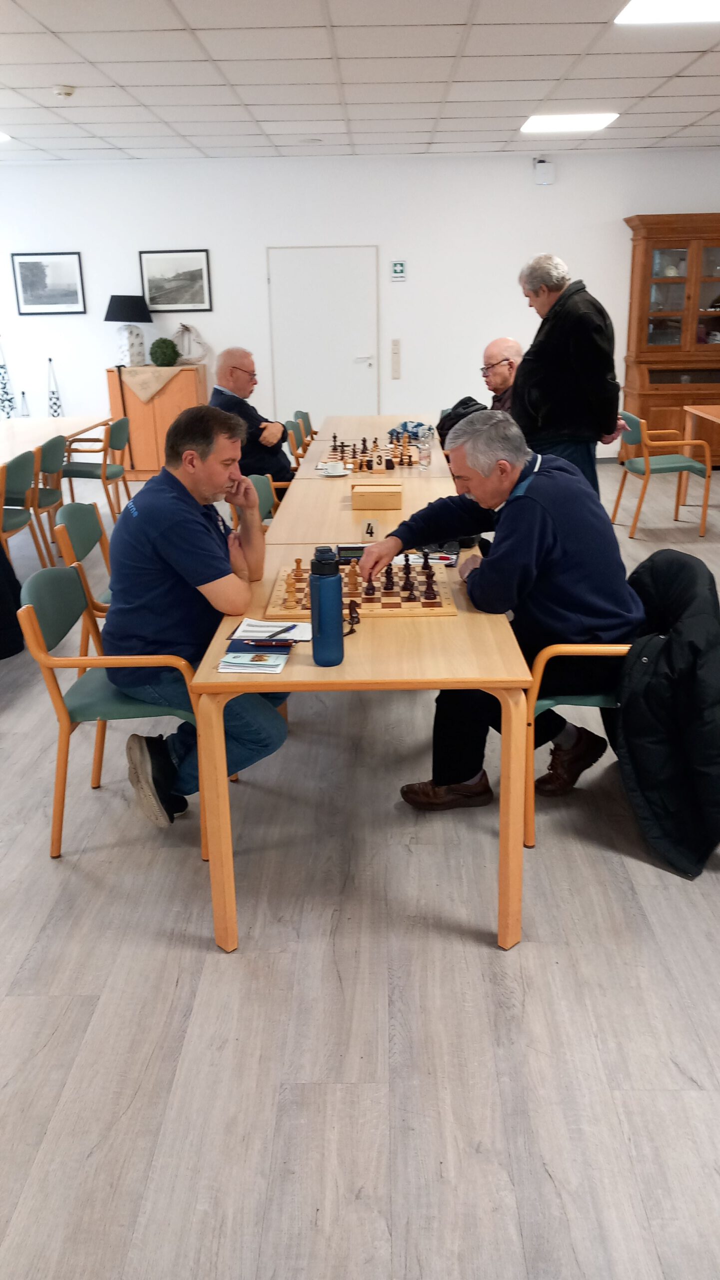 Wie lief der Wettkampf ab? Nach weniger als eine Stunde vereinbarte Bernd Thiel an Brett 1 ein Remis mit seinem Kontrahenten. Bald danach folgte ein weiteres Remis. Atilla Baslamis (Brett 5) hatte zwar zwei Leichtfiguren gegen einen Turm, glaubte aber nicht an seine Gewinnchancen.